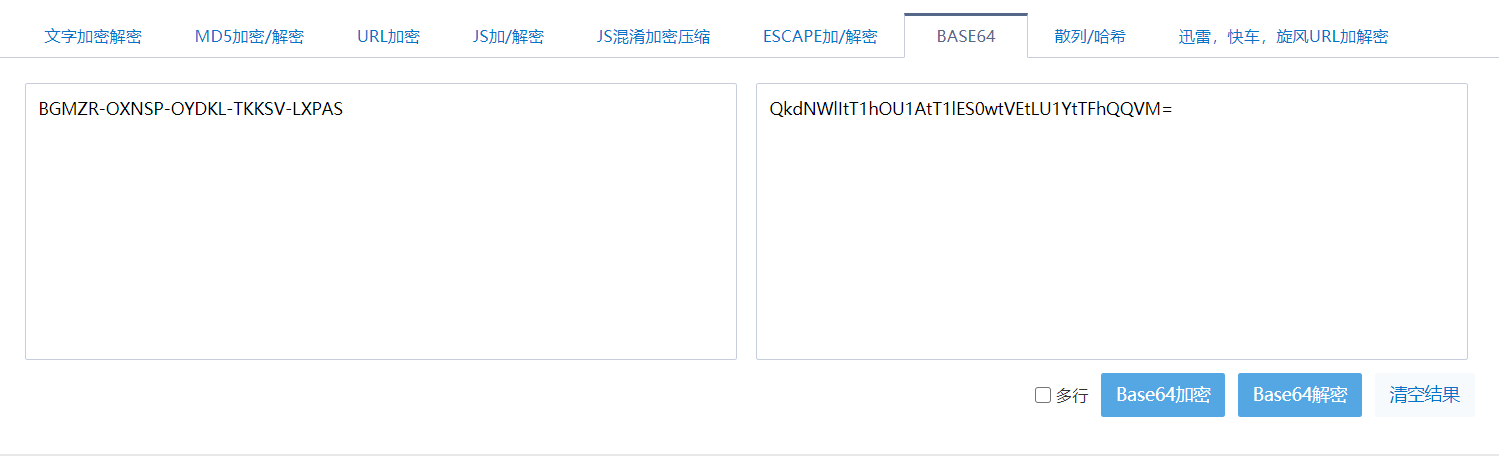 能够看出这是一段BASE64加密码,百度一个解码工具
